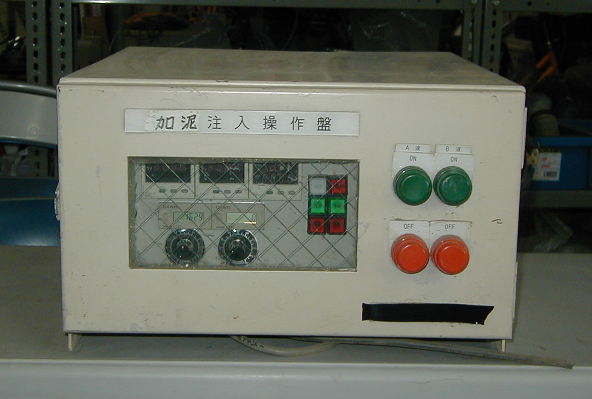 標準裏込プラント 最も一般的な裏込プラントです。 水-液体添加剤-粉体A-粉体B の順で自動作液を行います。 プラント内に全ての設備が組み込まれています。 |