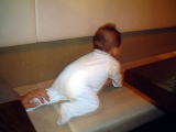 (写真は、居酒屋さんの長椅子上ではいはいの練習に励むのんちこ)