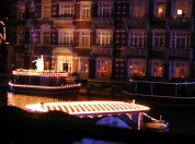 お昼寝後は園内のレストランで食事。その後イルミネーションを使った屋外ショウーを見ました。幼児連れには園内ホテルというのはベストの選択でした。