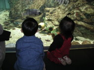 | サクラもかなり歩けるようになったので、再び行ってきました海遊館。ケンは相変わらず水族館が大好きなようです。特にイルカとペンギンに夢中のようです。動物大好きのケンですが、動物園よりも水族館の方が喜びます。サクラも結構気に入っていました。らっこがお気に入りでした。ただし、大きな魚が近くにくると怖がっていましたが。 今回、海遊館に行った理由は冬のお出かけは室内に限るということと、隣の天保山マーケットプレースにできた「なにわ食いしんぼ横丁」というグルメパークに行ってみたかったためです。そんなに広くはないのですが、昭和30〜40年代の大阪の町を再現した通りに大阪らしい食べ物やを集めたものです。お昼はここで、と考えていたのですが、予想以上の人込みで、ケンやサクラを連れて行列するのも嫌だったので断念。隣のフードコートで食べました。こちらなら「OSAKA海遊きっぷ」(海遊館のチケットと地下鉄乗り放題に加え、特定の私鉄も乗り放題になる切符)の割引も使えるしね。 |