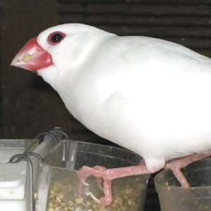 ・・・2007年6月天王町の金魚店でペアとして買ってきた白文鳥。大柄で赤く厚いアイリング大きな目を彩る超美鳥。マルと無難に同居しているが、放鳥時間はメスに声をかけ回り、ことごとく無視されている。秋には妻の執念に圧倒されつつ、子育てをこなした。2009年6月になり、ようやくテーブルの上でエサを食べるようになった。2009年11月マルに先立たれた後は、桜文鳥のメスをターゲットにして付け回すも振られ続け、特にマキのいる箱巣の中に夜這いを敢行する変態となってしまった(思い切り噛まれるのがうれしいらしい)。その後は気ままな独り暮らしを続け、2011年、若いヨビを後妻とするが、2カ月足らずで先立たれてしまい、気ままな生活に戻る。 |