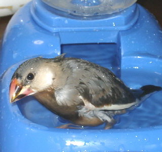 孵化35日目で大好きな水浴びを始めてしまい(左)、それが趣味となった