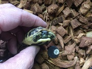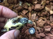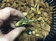 寒さに強いカエルで、ケージ内の水容器に潜っている事が多いです