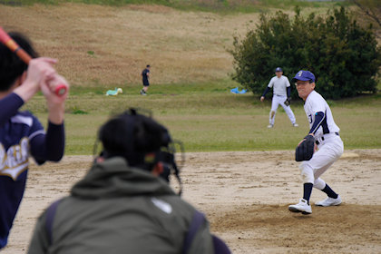 Me日並投手は最速120km/hの直球を軸に緩急自在な投球をみせる