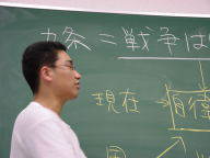 週末なので戦闘機は飛びませんでしたが、反対同盟の川井さんから、百里の話を聞いた若者達はかなり驚いた様子でした。場所を移して交流会を持ち、法学部に通うOBから憲法九条の話を聞き、自衛隊と戦争のことも少しは考えてくれたようです。戦時中の「すいとん」も作って食べて、戦争のことを感じ