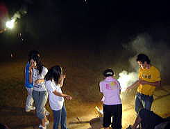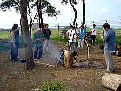 | お昼はすいとん≠ツくるぞ すいとん≠チて何? あーそうか、知らないんだ。 戦中・戦後の食糧難の時に、お米の代用で食べたんだよ ふーん 初めてつくるすいとん♂スとか1時間後にできた けっこうおいしいね うーん、昔は不味かったんだけどねえ… 8月7,8日のピースキャンプに参加した若者達の2日目の昼食は、戦争時代を疑似体験するため、すいとんをつくりました。平和公園で1泊2日のキャンプすること自体が戦争の疑似体験ですが。今年はおよそ30人が参加しました。 百里基地反対同盟と百里平和委員会が共催する百里ピースキャンプも今年で14回目になりました。百里基地の真ん中にある平和公園で、大勢の人が楽しめる夏休みの行事をと始まったこのキャンプ、毎年多くの人で賑わってきました。今年もバーベキューあり、花火あり、昔の子供達の遊びありと、誰でも愉快に楽しめる中身でした。「百里基地、そして自衛隊はどうなっているの?」を見て感じて考えることもできました。来年も、みなさんの参加をお待ちしています。 |