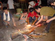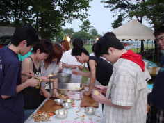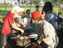高校生の中心に20人以上の参加者は、テントの設営、竹での食器づくり、バーベキューと慣れた手つきで準備を進めました。2回以上の参加者も多く、バーベキューは高校生が取り仕切っておいしく食べることができました。