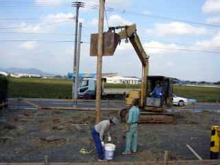 穴堀建柱車で、掘削し松杭末口150oX8Mを63本