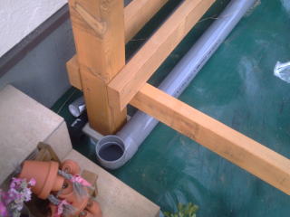 ウッドデッキ上に手洗い場を作る予定なので、床を張る前に水道管と排水管を床下に通しておく必要があります。