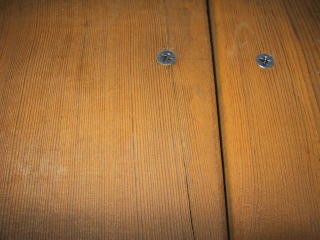 床材と床材の間に5mm厚のワッシャを挟んで隙間を確保しているのですが、反りの激しい材料を矯正して固定した場所はワッシャが固く挟み込まれてしまい抜くのが大変でした。