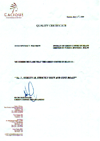 | 品 質 → SANTOS bQ 大きさ → Screen 18 味 → Strictly Soft 焼上り → Fine Roast |