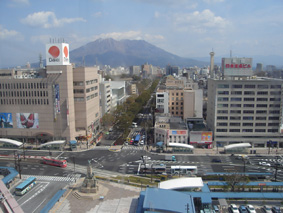 と、気を落とすまもなく、鹿児島の新しい風景が、落書きだらけの透明ガラスの向こうにひろがる。