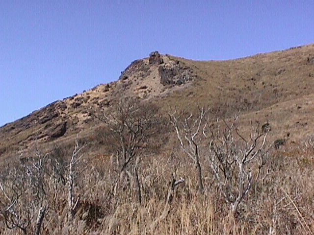しばらくいくと、鋭角に尖った高千穂峰が見えてくる。新燃岳山頂は1412m。ここからの高千穂は美しい。そこから下れば中岳である。山頂から「団体ツアー」らしき中高年一行20人くらいが山岳ガイドを先頭に下っていった。頂上でやや遅い昼食(13時ころ)。