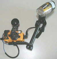 ワイドレンズ、マクロレンズは、ストロボアームにつけた、レンズホルダーにつけて持っていきます。(この写真には写ってません) 重さは陸上で3.0kg以上、水中ではややマイナス浮力になります。 水中では苦になりませんが、ビーチエントリーで長い距離を歩くときは、ちょっとつらいですね。 |