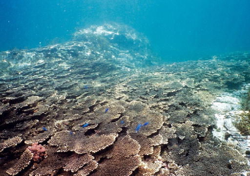本州では珍しい、テーブルサンゴ(クシハダミドリイシ)の群生です。