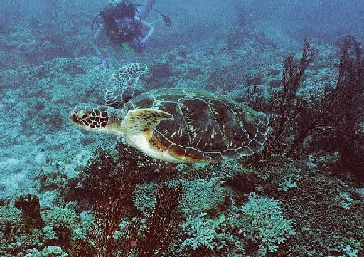 ウミガメ。「アカ」か「アオ」かは解りません。