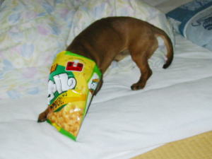 この袋が勝手に頭から被さって来て抜けまへんねん。