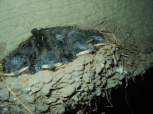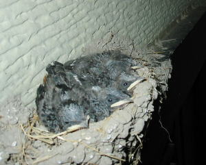 朝のお散歩に出る時に見たら 玄関に巣を作ってたツバメの雛が孵ったよ。 可愛いやろ。 |