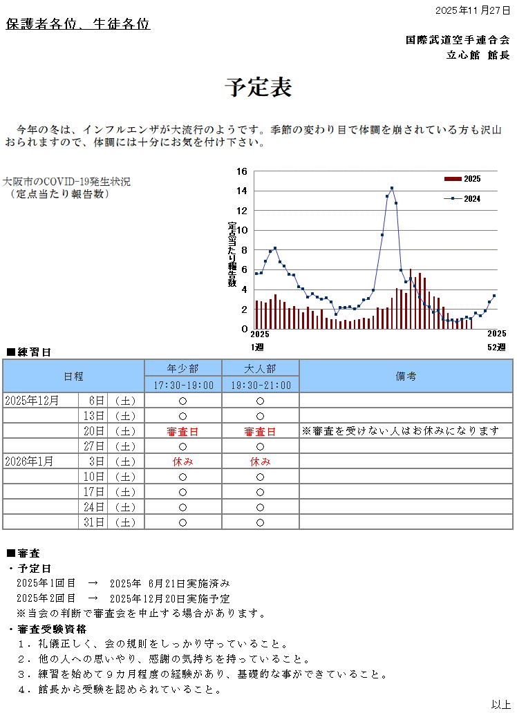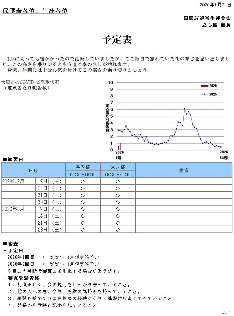 | 少年・少女の部 | 毎週土曜日 | pm5:30 〜7:00 |