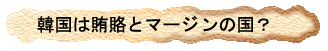 | これは、聞いた話しですが韓国では公務員または警察官になって2年で家を建てられなければバカといわれるらしいです。 つまり、交通違反なんかに対して今でも袖の下が横行しているらしく、車にはすぐに渡せるように常にお金を用意してあるとの事です。 注意:あくまでも聞いた話しで事実関係については一切確認していません。 一般社会においてもマージンは当たり前のようです。 これは日本の旅行社でもありますが、旅行中の買い物に対して或いは連れて行く人数に対してバックマージンが入るようです。 |