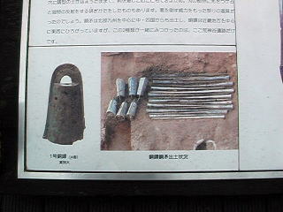 もの同型の銅剣が、ついで1985年、すぐその横七メートルの地点から銅鐸6個と銅矛16本が発見