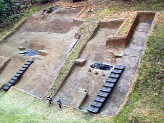 埋まっていたか解りやすくなっている。以前に訪れたときはレプリカの目の前まで行けたのだが