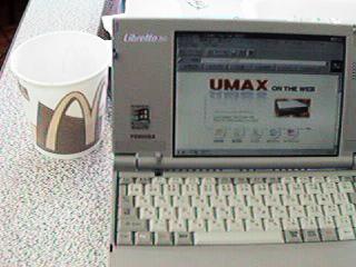 マックでインターネット(笑) 近所のマクドナルドから、リブでインターネットしてみました。(笑) ここは、ピッチの電波状況が良くて快適です。 p.s 外でパソコンできると、気分転換になってとてもいいですね。 ホームページに戻る