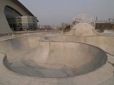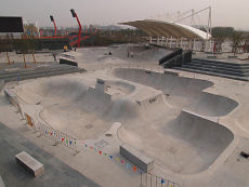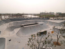 ■案内先にはSMPアジアのRobin Sunがいます■もちろん初対面、Lee Jay氏も後で来るとの事■彼らの英名はAKAなので、もちろん中国名があります■SMPスタッフは英語OK、当方の語学力は低レベル■英語/中国語の単語をチャンポンし、意思疎通を図ります■昨日の経緯を話すと、ウィーク・エンドのみ一応オープンしているとの事■その定義が理解できないのですが土曜?日曜です■ただし、天気が悪いと判断したらクローズ、昨日みたいにパークが滑れてもです・・何処から判断するのだろう?■メンバー・カードをゲットし、先ずは警備員達に水戸黄門モードでカードを披露、苦笑いする彼らです■Robin氏の話では春先迄、登録者は週末をフリーで開放しているとの事■また日本人もSMPへ数名来たようで、名前を聞いても知らない名前ばかり・・・無名のマニアなのか■よく聞くと上海近郊に在住する企業戦士達の息子達みたい■日本人に限らず欧米の人達もいるそうです■小一時間ほど話込んでいると、欧米系のB3がちらほら、地元中国のスケーターもパラパラ登場■総勢10名程でしょうか、ほぼ100%がストリート・エリアに集中します■彼らとのコミュニケーションも図りたいけど、如何せん時間が無いので体育館側からセクション・チェックの開始■先ずはボウル区域、浅いのが1基、クローバー型が2基それが隣接しスパインで繋がったタイプ■もう1基は黒コンクリ・コーピングの縦椀付きでライン取りは超上級者仕様■続いてパイプ・エリアは超ド級、12ftオーバーからドロップできるスケーターでも玩ばれる事でしょう■日本の名だたるスケーターでさへ、1度のアタックでエリア全体の攻略は困難なハズ■我こそはと言う輩は、格安ツアーで近場のSMPを、お試しあれ■流す滑りが一定程度できるスケーターが生唾物で楽しめるエリアが中級半管区?■即ファンライドを十分に堪能できます■今回はストリート・エリアと競技会エリアは画像で個々のレポートとします。つづく(社)