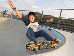 ■今日は、四国クルーの一森氏と平石氏を兵庫の"尼"でピックアップし三重定食を味わいに行く日■待ち合わせの時間を大幅に遅れる ひ・ら・い・し君、待たされるのが大嫌いな当方を知っているのか■一森氏がいなかったら5分も我慢できずに出発している所です■大体やねぇ、三重定食を舐めとるネ・・・DEVOU号?■当方にとっても、2ケ月振りのイチゴは味わい甲斐があります■本家DEVO・一森・社の三名はローカル・ラインをトレースしつつ走りに走ります■初イチゴの平石氏は蟻地獄埋没パターンに加えて足殺しの刑?■なんとか男気で踏ん張り、1ラウンドだけのイチゴを後にB7へ■三重定食はイチゴtoB7の表パターンとB7toイチゴの裏パターンで味わいが違ってくるので両方お試しあれ■B7には、"Team AKIRA"の晃・タッキーに若手のユウスケ君が侘寂の空間を余すところ無く満喫している所です■浅瀬/深瀬とライン取りの秀逸な晃氏■徐に滑りだしたかと思うとスタイリッシュに決めタッキー■B7ローカルにあって異端児っぽくなっていくのか・・ユウスケ君■スラシュに嵌るDEVO氏■当方は相変わらずのへっぽこOllieをヘコヘコ■さて、親指BOWLも当然"初"の平石氏■ここでの滑りは、力をほとんど必要としないのですが■イチゴで筋力を使い果たし、足腰の柔軟性もガス欠状態・・・ターンをきる事ができるのか■間髪なくやってくる対面での抜重はクイック過ぎて、切返しも厳しい形相が見てとれます■もう見栄えなんか言ってられません状態・・・ともかく滑りきる事だけに集中■いい表情になってきましたヨ〜■歯を食いしばって(笑)なんとか赤髭薬局になった所で、重定食をご馳走様■さぁ、そんでもって次なる三重定食は何時にします。(社)