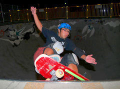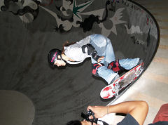 ■夜"g"を予定している所へ着信■ミスター大越氏〜「火打形で滑っているので来ない」との嬉しい誘惑■陽の陰る前に合流、短時間の御久セッション■彼、ご用達のBULLに替えてZ-flexに跨ってのセッション■えぐる様なスナップバックは渋い!■フォールした時のダメージを最小限に抑える事ができれば■スケートと加齢の関係は常識を覆し長く楽しむ事も可能かも■先週に続いての登場はDEVO氏・・超下手っぴぃなスケーターも少しは見れる存在に■社に貶されながらも、本人自身が楽しく?努力した賜物■次なる課題は10ft以上におけるメイク率です■ミニで出来ない事はバーチでは無理■ミニで満足するな、ミニはイメトレの場■イメトレできたら即バーチでトライだ!■例えばプロ野球で三割打者と言えば一流です■三回の打席でヒット一本を打てれば一流と言われるのです■これは相手が有りゲームとしての駈引きが有るからです■セクションの動かないスケートでは、メイクに至る全ては自分自身のコントロールに委ねられます■スケートでは三割打者で満足してはいけません■身体が無意識に反応して成功するまでの完成度が必要です■その為の考え方として、確実にこなせる高さで物にしていく事■その高さの最終目標は今なら15ftをイメージ■トライする時は乗りゴケする位までの気持ちで攻める(若い内しかできませんヨ)■イチゴ・ローカル DEVO君、ローカル・ボウルでフロントも確実に当てれんようでは情けないです■最近は滑れる高さでチャライ滑りをしとるようやけど■次にイチゴで会った時、三割以下の滑りだったら君とのスケート付合いは終りだヨン、圧!!■ナイトセッションでは久保田夫妻も登場、久しぶりだったけど元気そうでなによりでした。(社)