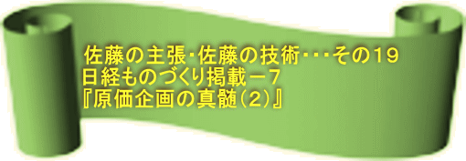 日経ものつくり誌に、佐藤の連載が始まっています。4月号から1年間の連載です。佐藤の思い入れを精魂こめて書いています。今月(10月号)のテーマは「企画に勝つ」です。実は書きにくいところですが、大変好評のようです。(アンケート情報から)他の記事も魅力満載で是非ご購読をお勧めします。