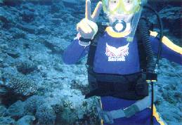 6日 天気は少し悪い。う〜ん、いかにもマンタがでそうな感じ(お化けじゃあるまいに)。この日も午前中1本、午後から「川平石崎マンタスクランブル」へ。昨日と同様、視界は悪い。しかし、今日は最終日。今日マンタが見れなくても、帰らなくてはならない。マンタを撮るために写るんですのフィルムもいっぱい残してあるのに・・・。そんな考えもむなしく、ついにマンタは現れなかった。いや現れたのかもしれないが見えなかった。くぅ〜。(T_T)