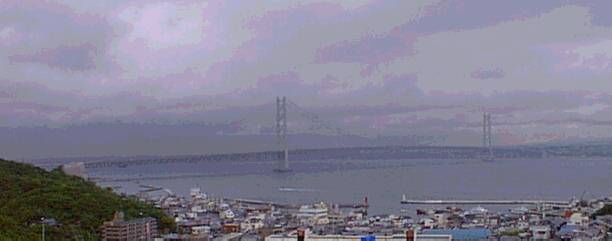 | 淡路島側の淡路SAから見た橋全景。手前が淡路島、向こうが 神戸市垂水。この橋は下りて全体を見渡さないと大きさが実感しにくい。走って いるだけだとただの広い道。夜にはライトアップもあるそうな! | |||