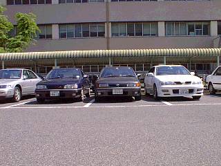 ![]() | 広大駐車場にて。左から”ど・ノーマルのまつプリ、なんプリ、 はぶプリ。 | ||